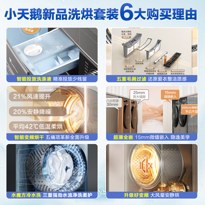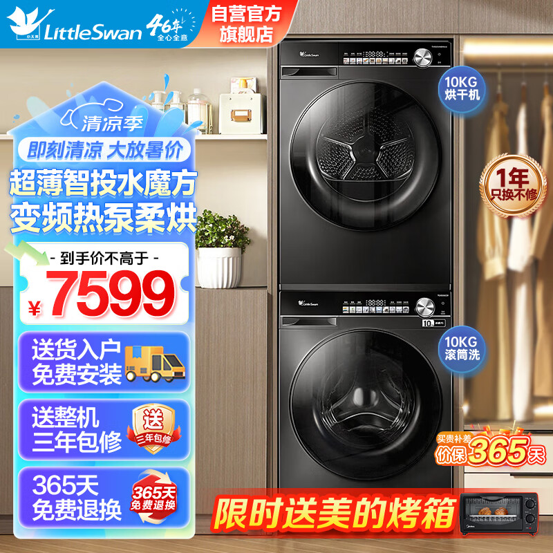 小天鹅(LittleSwan)洗烘套装 超薄水魔方智能投放全自动滚筒洗衣机烘干机一体机 10公斤变频热泵烘干衣机以旧换新价格:7999.00元!