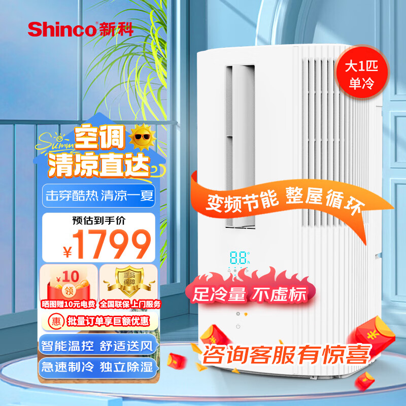 新科立式变频家用空调一体机窗机厨房空调大1P单冷简易安装快速制冷出租房制冷量2600WKYC-26C/B1-FC价格:1799.00元!