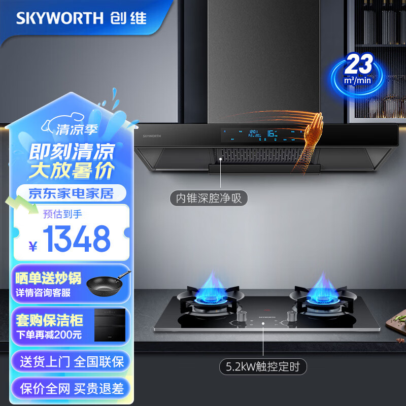创维(Skyworth)抽吸油烟机灶具套装烟灶套装欧式顶吸排油烟机燃气灶套餐家用23风量自动清洗挥手Y1H+Z200天然气价格:1398.00元!
