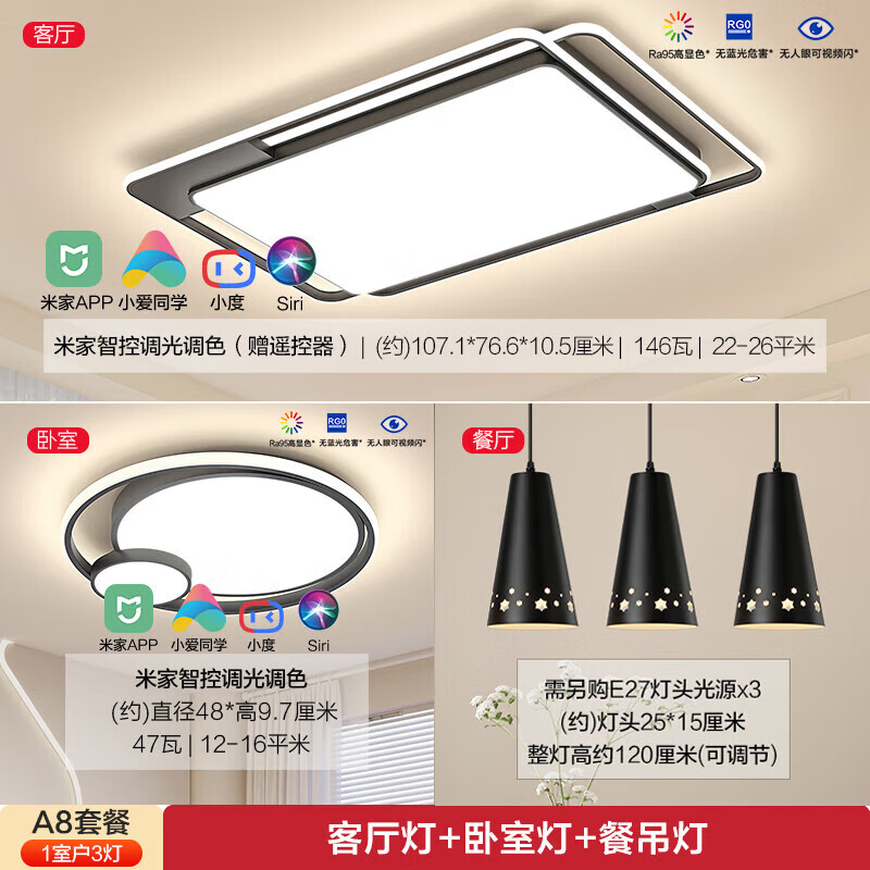 欧普照明(OPPLE)LED吸顶灯 客厅卧室灯饰套餐 智能音箱/AI智控调光价格:2066.00元!