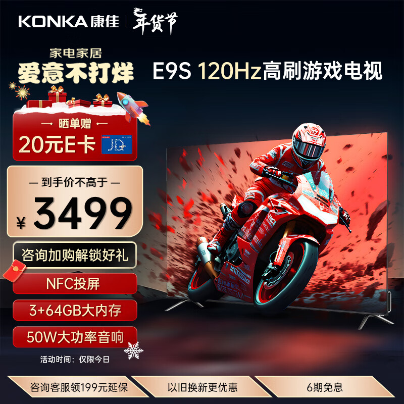 康佳电视 75E9S 75英寸 3+64GB 120HzMEMC高刷护眼 4K超清屏投屏 智能语音液晶平板电视机以旧换新价格:3499.00元!