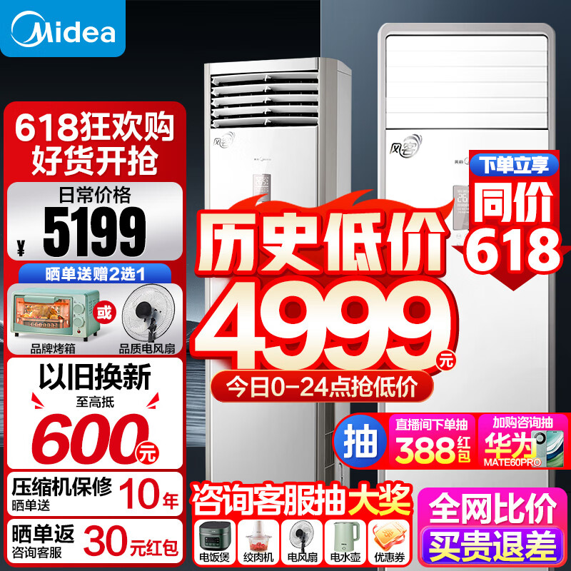 美的(Midea)美的空调大3匹柜机新能效变频冷暖客厅企业商用商铺餐厅立式大出风口强劲风空调 新风客价格:4999.00元!
