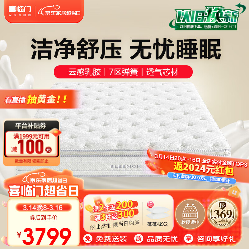 喜临门床垫 2cm高纯乳胶7区分区弹簧床垫 3D芯材床垫 白骑士pro 2x2.2米价格:3899.00元!