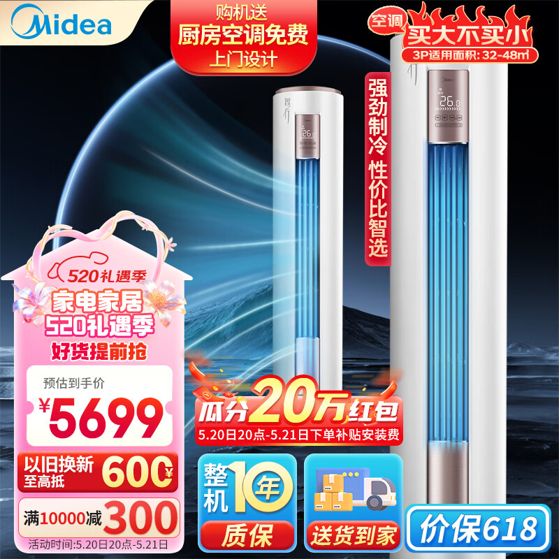 美的(Midea)空调3匹柜机 智行 新一级能效 变频冷暖 节能省电 空调柜机 KFR-72LW/BDN8Y-YH200(1)A价格:5699.00元!
