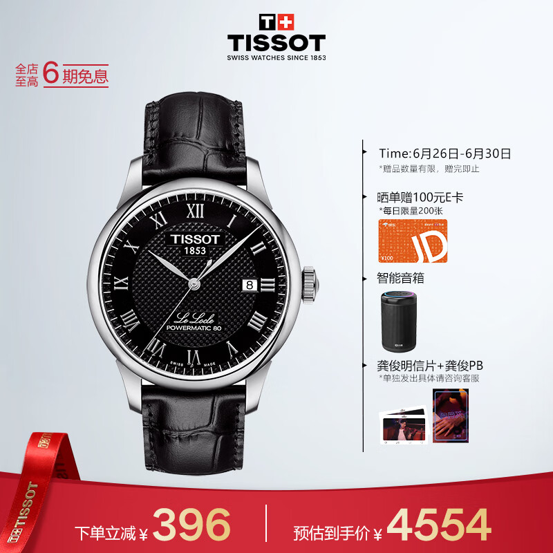 天梭(TISSOT)龚俊同款 力洛克系列腕表 皮带机械男表 T006.407.16.053.00价格:4950.00元!