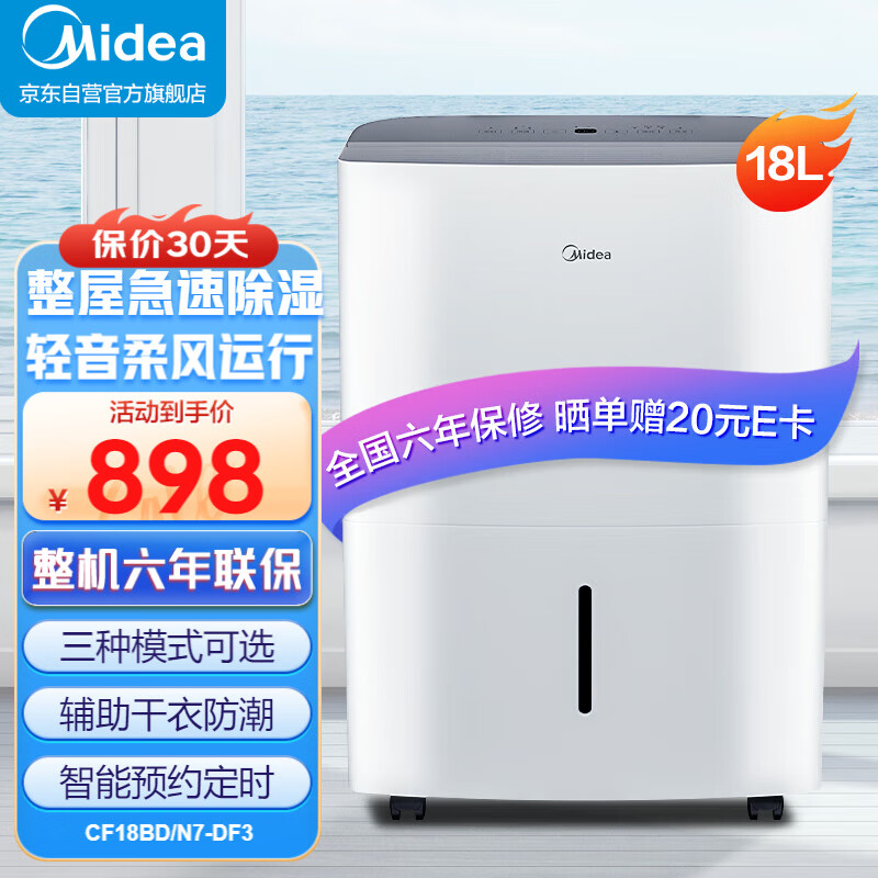 美的(Midea)除湿机家用抽湿机 卧室客厅去湿空气净化 地下室吸湿器干燥机轻音低噪除湿器衣物烘干机 18L/天 20-40㎡ 【经典款】价格:1098.00元!