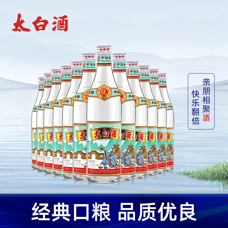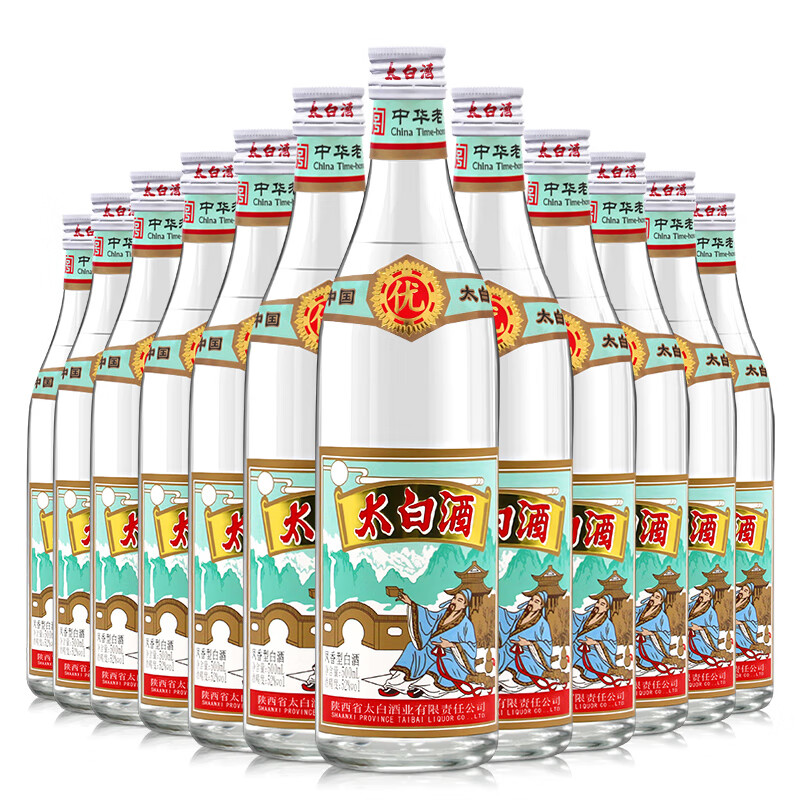 太白酒 优级太白 凤香型白酒 52度 500ml *12瓶 整箱装价格:522.00元!