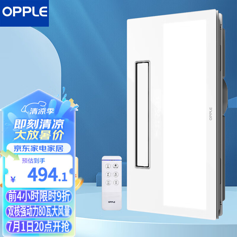 OPPLE欧普凉霸集成吊顶数字显示吹风换气照明一体遥控摆页凉霸JDSH168价格:549.00元!