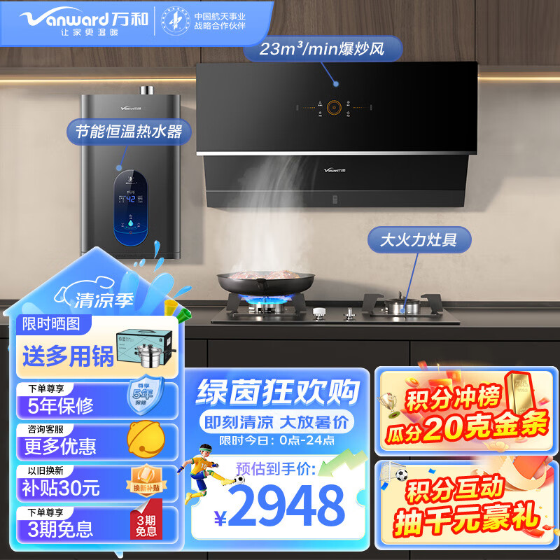 万和(Vanward)烟灶热三件套 侧吸式挥手感应自清洗油烟机燃气灶具热水器多件套装WJ760+B7L51+ME5D16(天然气)价格:2948.00元!