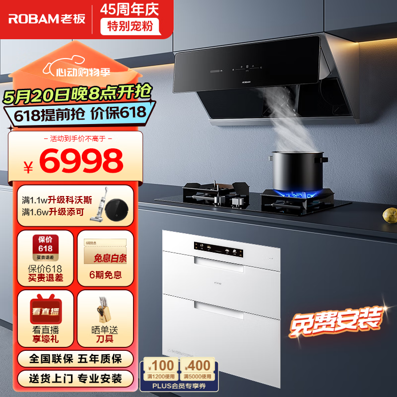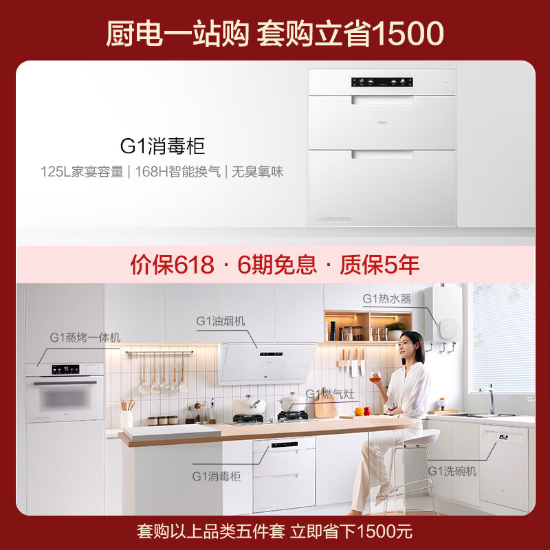 老板(Robam)盐系G1消毒柜搭配抽油烟机探索家D7S智能变频侧吸24风量灶具105L消毒柜 烟灶消28D7S+57B2DT+XZ79价格:7698.00元!