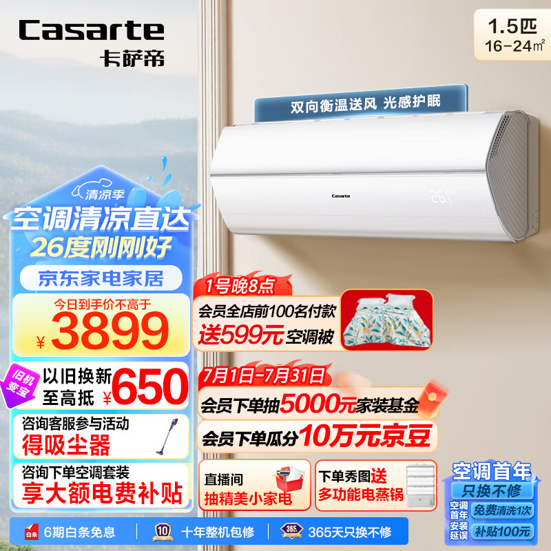 卡萨帝(Casarte)空调1.5匹 光年 卧室变频冷暖挂机 新一级能效 全空间衡温送风 CAS358GCA(81)U1以旧换新价格:3899.00元!