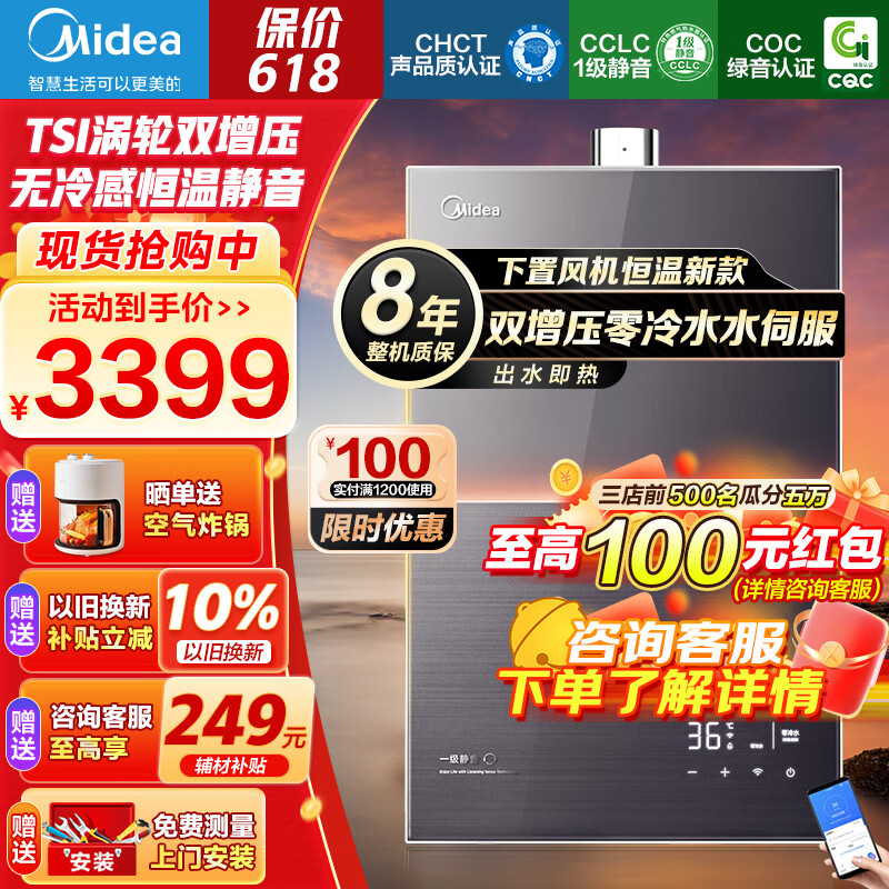 美的(Midea)燃气热水器 下置风机 一级静音 双核智能变频恒温水伺服 远程智能操控家用低噪 安睡系列M9 16L M9 Ultra 零冷水 天然气价格:3899.00元!