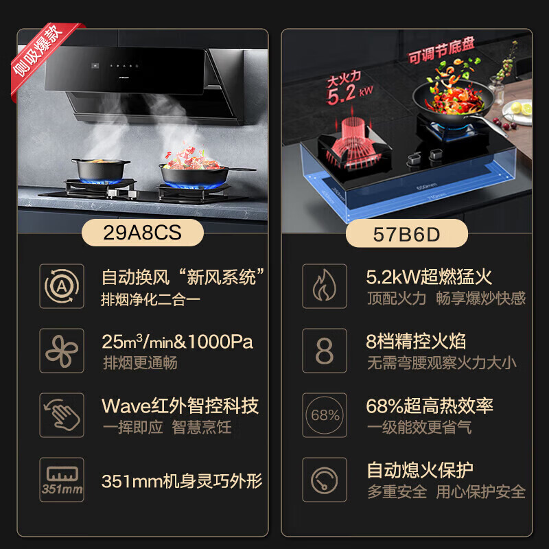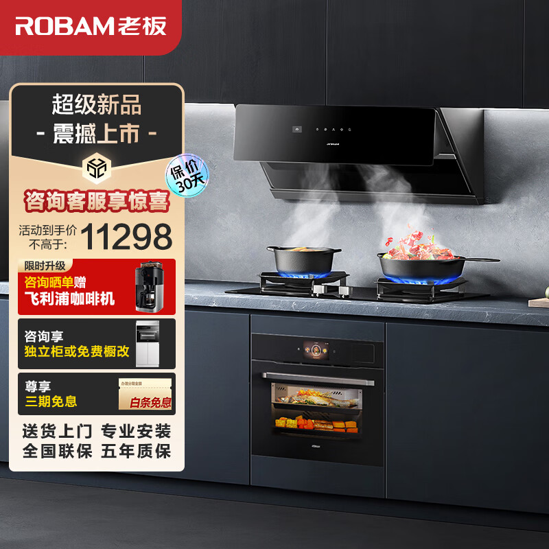 老板(Robam)29A8CS+57B6DT+CQ9068A烟灶蒸烤套装厨房多件套25m3/min抽油烟机 蒸烤一体机TFT彩屏(天然气)价格:11298.00元!