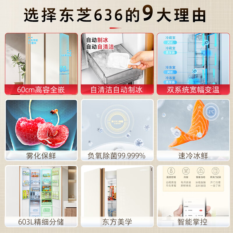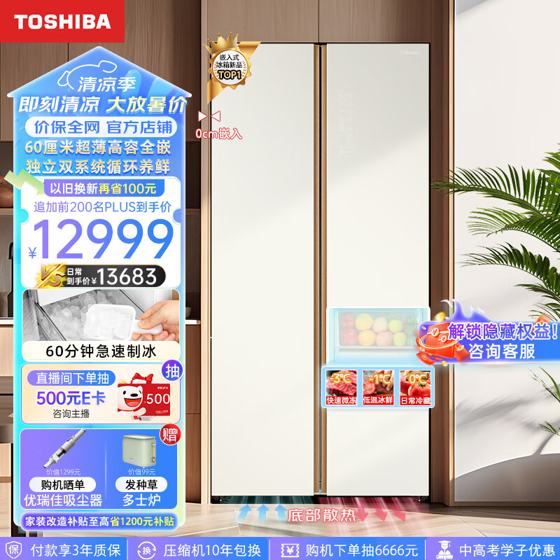 东芝(TOSHIBA)636大白杏对开双开门高容全嵌一级能效双系统大容量风冷无霜变频家用制冰冰箱GR-RS636WI-PG1B8价格:13683.00元!
