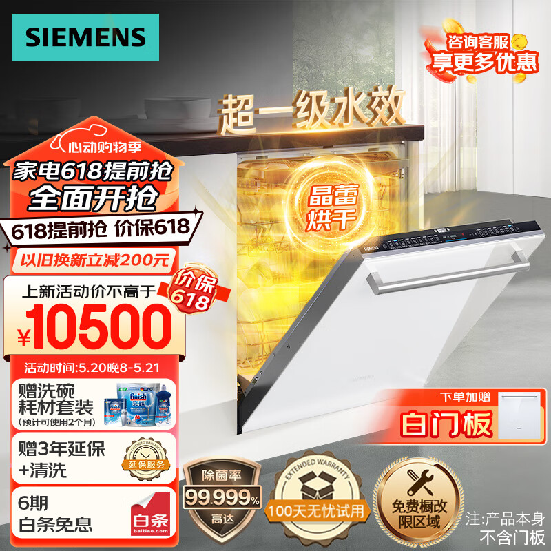 西门子全能舱全嵌入式16套晶蕾烘干除菌存储 晶蕾96小时储存 触控式SJ65ZX00MC(带白玻璃门板)价格:10500.00元!