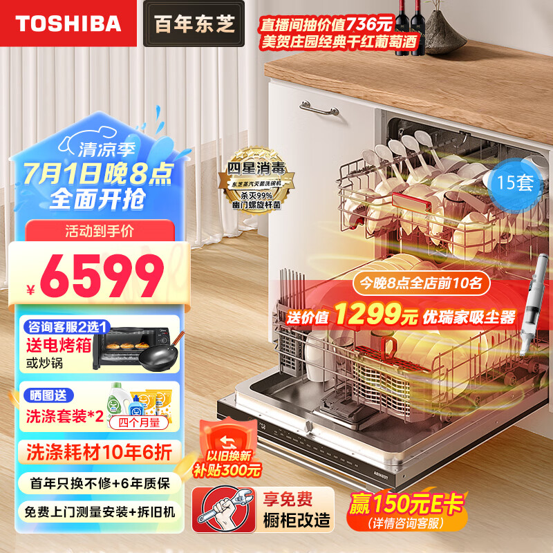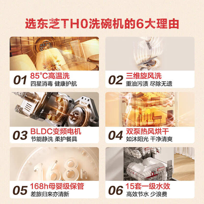 东芝(TOSHIBA)15套洗碗机嵌入式家用一级变频分层洗 85°C高温灭菌四星消毒热风烘干大白梨TH0(含莫兰迪灰面板)价格:6999.00元!