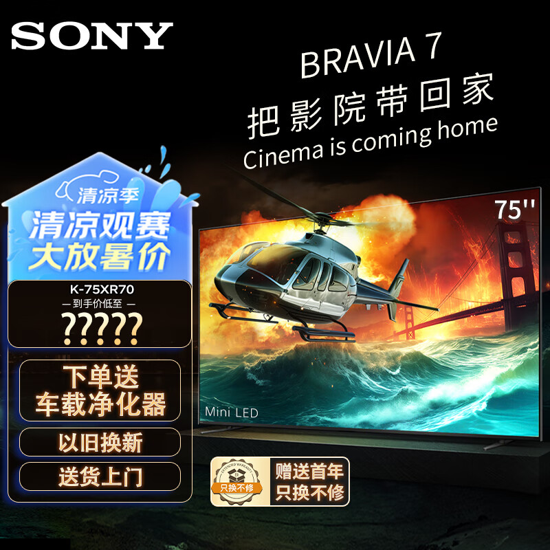 索尼(SONY)K-75XR70 75英寸 索尼电视7系 MiniLED电视 AI画质音质优化 XR认知芯片 旗舰液晶游戏电视机价格:15999.00元!