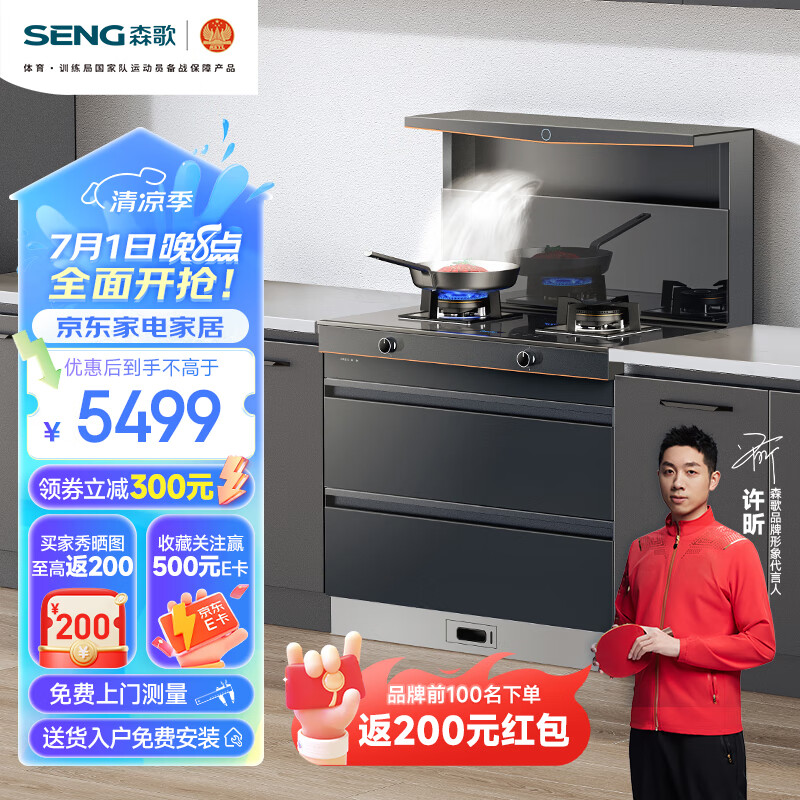森歌(SENG)海豚系列L1集成灶 集成消毒柜款 二消毒一体式吸烟机燃气灶具 家用抽油烟机燃气灶 灰色液化气价格:5799.00元!
