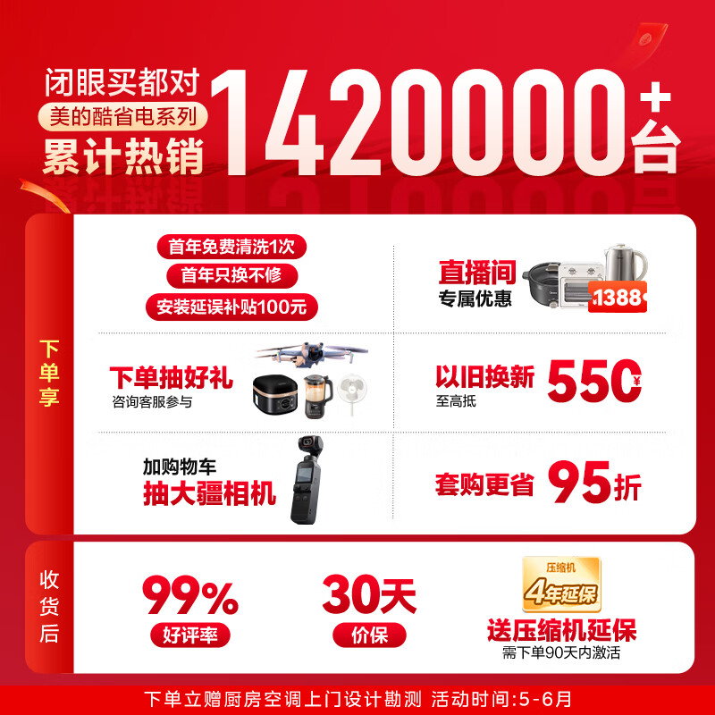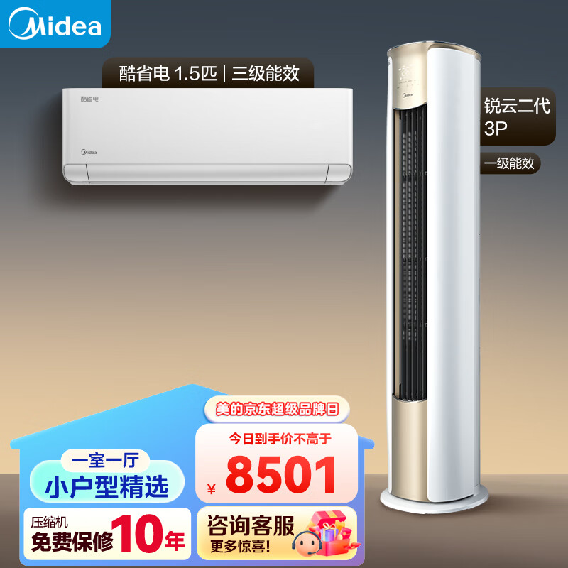 美的(Midea)空调 锐云 空调套装 一室一厅 (1.5匹酷省电三级*1+3匹锐云)价格:8948.00元!