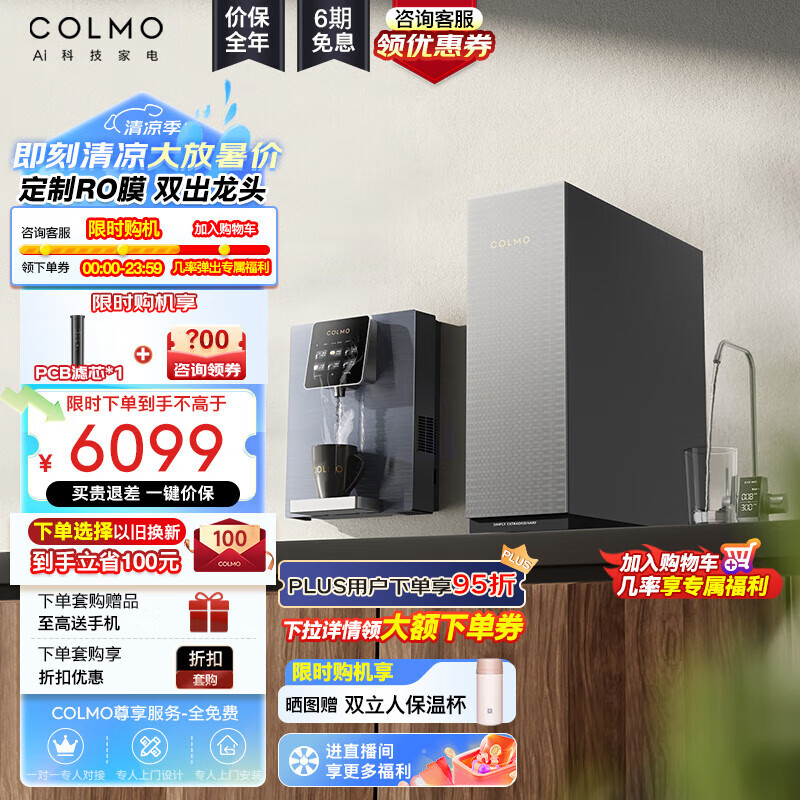 COLMO 星云净水器套装B103+RA08 4年RO反渗透净水机 1.25L/min双出水龙头 六档控温管线机价格:6099.00元!
