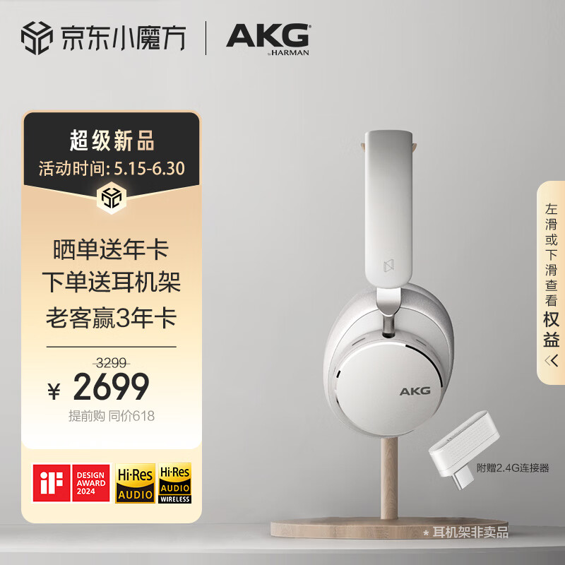 AKG N9 头戴式无线自适应降噪蓝牙耳机智能降噪通话耳麦超长续航高音质商务音乐耳机白色价格:3299.00元!
