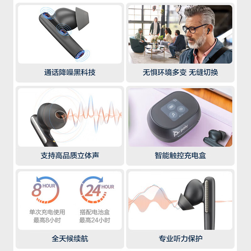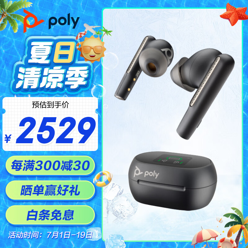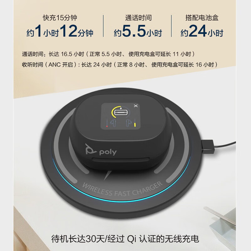 缤特力(PLANTRONICS)Free 60+UC真无线蓝牙耳机 混合降噪 蓝牙5.3 超长续航 可触摸彩屏充电盒 支持无线充 IP54级 黑色价格:2799.00元!