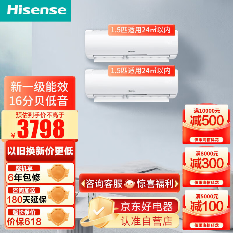 海信(Hisense)1.5匹 新一级变频 空调挂机 速冷热 冷暖智能 低音自清洁卧室壁挂式 2台套装 KFR-35GW/E290-X1价格:4198.00元!