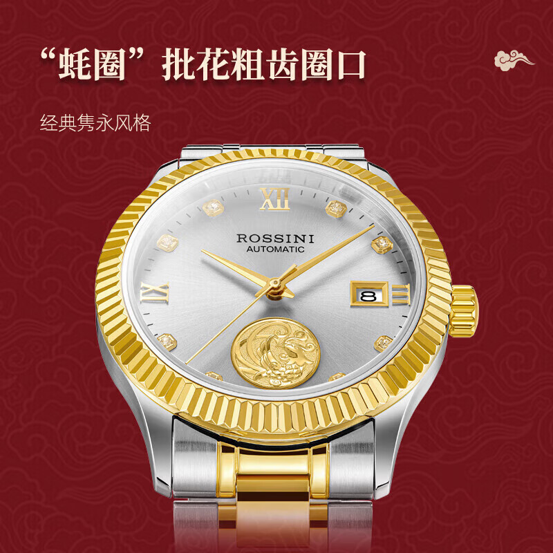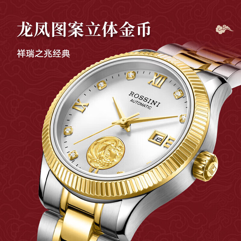 罗西尼(ROSSINI)手表女自动机械表钢带生日礼物送女士国表金币富贵龙凤呈祥 50170价格:4485.00元!