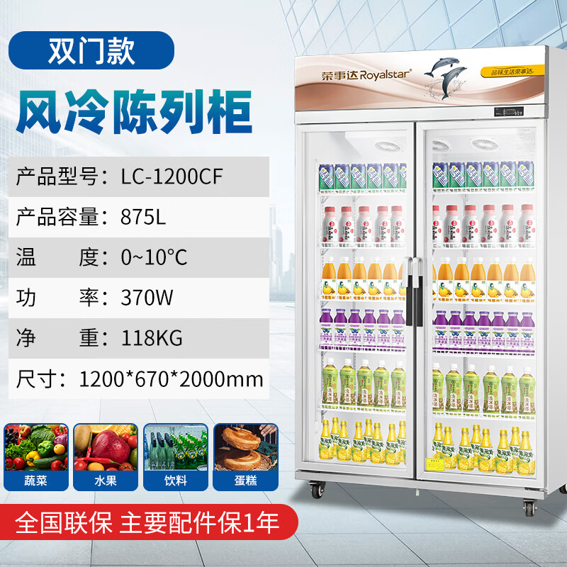 荣事达 Royalstar 双开门纯风冷展示柜饮料柜 保鲜冷藏柜展示柜风冷款 啤酒饮料串串 LC-1200F价格:3599.00元!