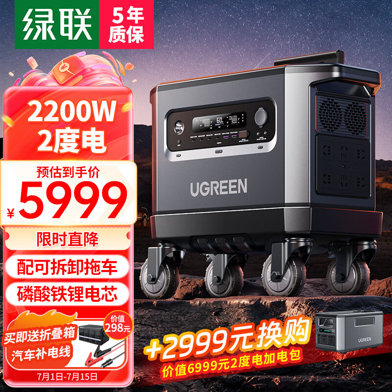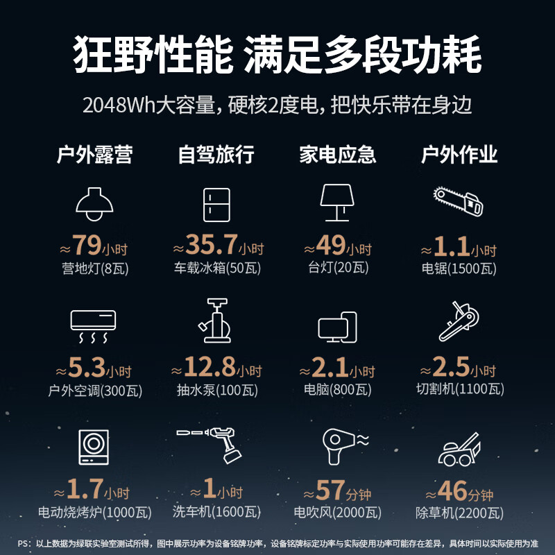 绿联户外电源GS2200W大功率2度电大容量220V快充移动储能车载应急备用价格:5999.00元!