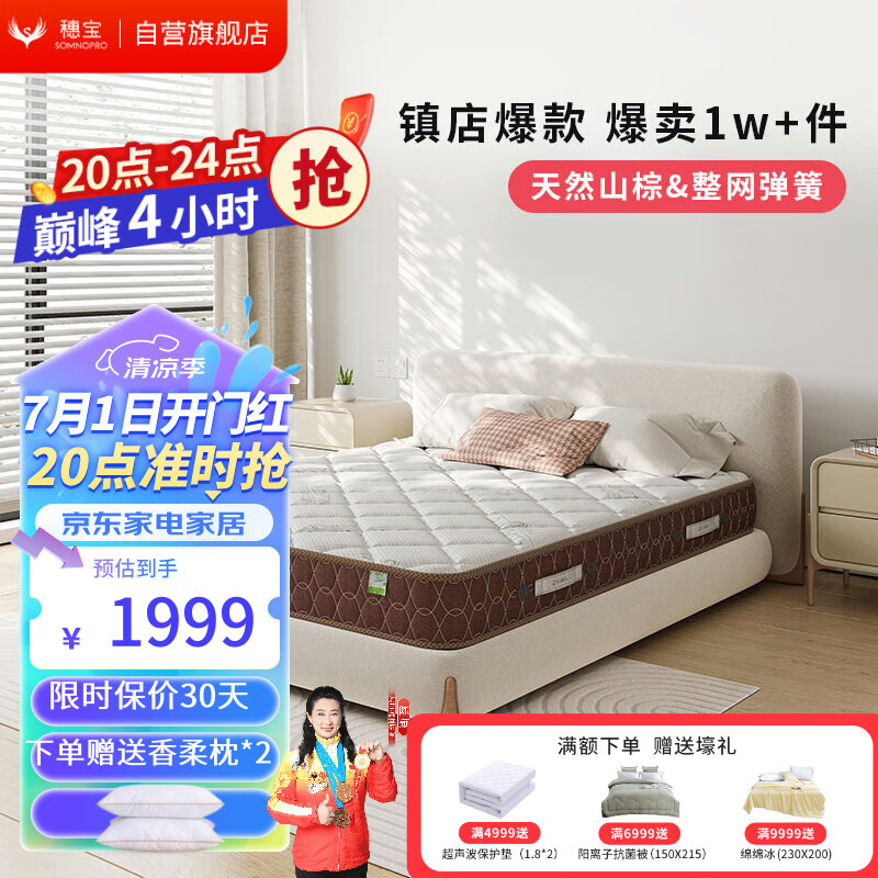 穗宝(SYMBOL)山棕床垫环保健脊棕垫19cm软硬双面垫 亲爱嘚 150*190价格:2349.00元!