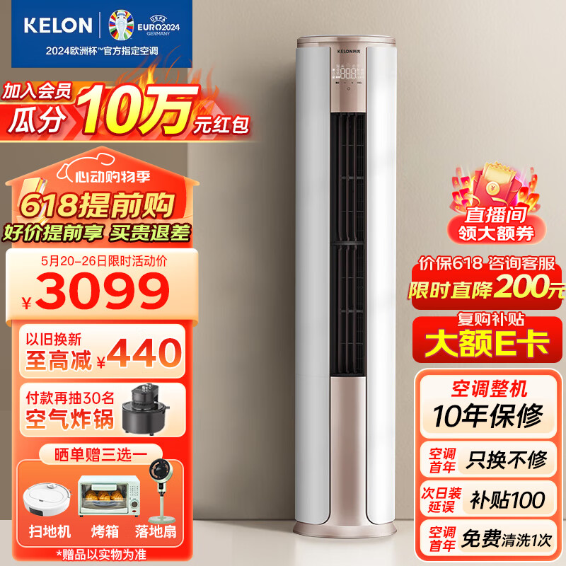 科龙空调2匹柜机变频冷暖低噪智能WIFI自然风除湿57℃自清洁圆柱立式客厅空调KFR-50LW/FM1-A3以旧换新价格:3098.00元!