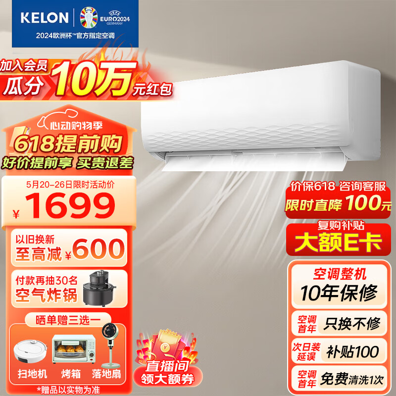 科龙空调1.5匹新一级能效大风量轻音16分贝变频冷暖卧室壁挂式空调 KFR-33GW/QJ1-X1价格:1699.00元!