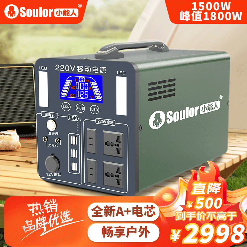 小能人户外电源1500W大功率大容量220V充电宝自驾露营停电应急汽车备用价格:3198.00元!