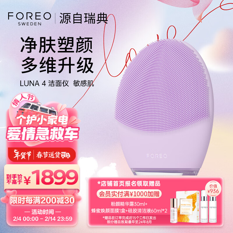 斐珞尔(FOREO)露娜电动洗脸仪LUNA 4净透舒缓洁面仪清洁按摩2合一洗脸神器敏感肌适用生日礼物女送老婆 紫色价格:2199.00元!