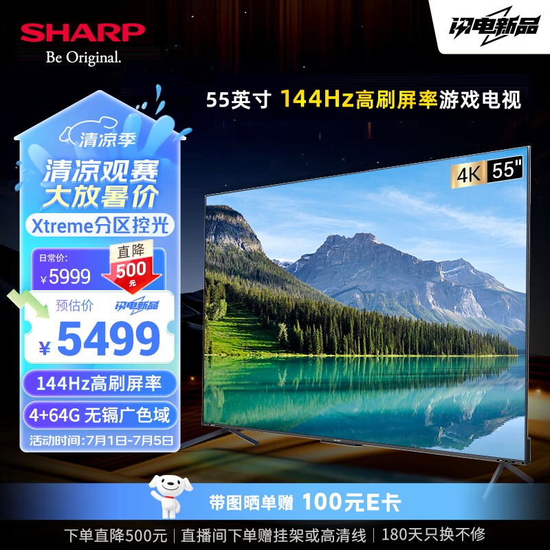 SHARP夏普 55英寸144HZ高刷 Xtreme分区控光无隔广色域 4+64G 远近场双语音4K智能电视GN7000【欧洲杯】价格:5499.00元!