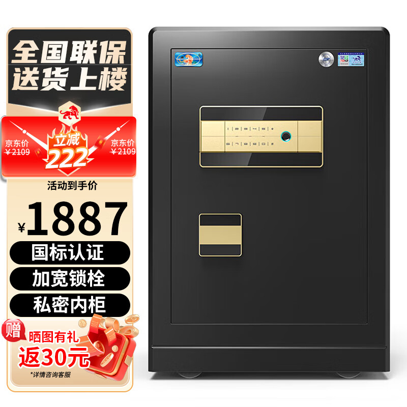 虎牌保险柜家用办公小型国标认证保险箱60cm指纹密码wifi财务专用支持鸿蒙保密柜夹万 尊虎系列 商务黑价格:2097.00元!