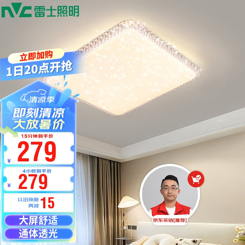 雷士照明(NVC)led吸顶灯卧室灯现代简约仿水晶满天星灯饰灯具 三段调光48W价格:369.00元!