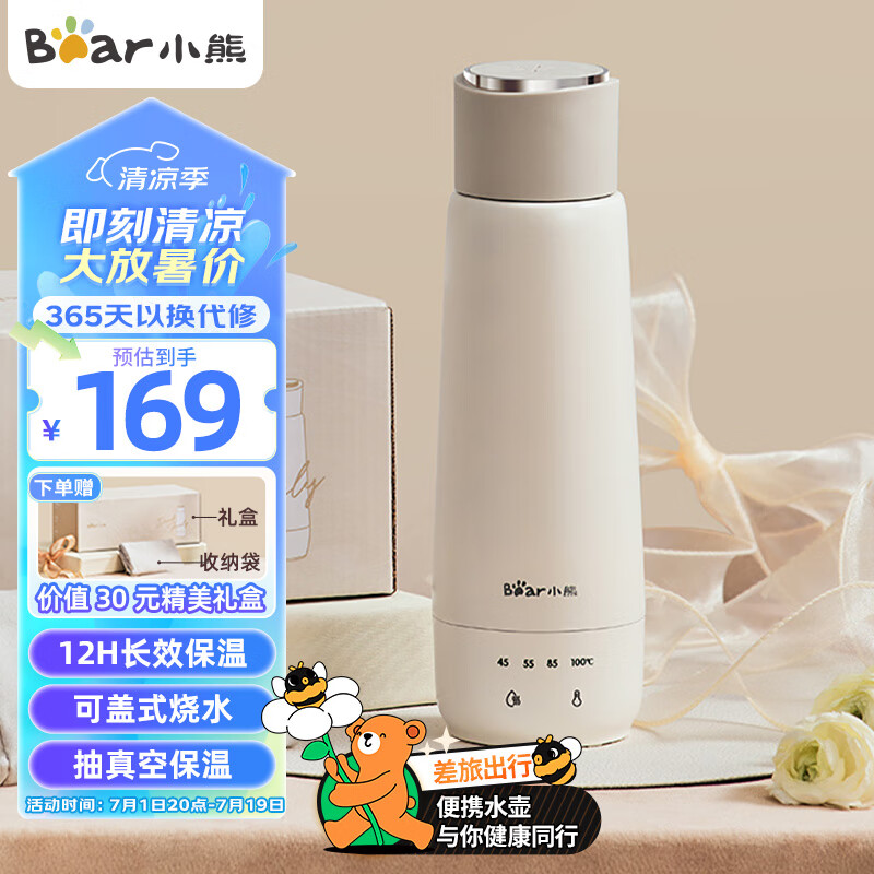 小熊(Bear)便携式烧水壶 烧水杯 家用迷你电热水壶304双层不锈钢抽真空保温旅行冲奶热水壶 ZDH-C04X1价格:169.00元!