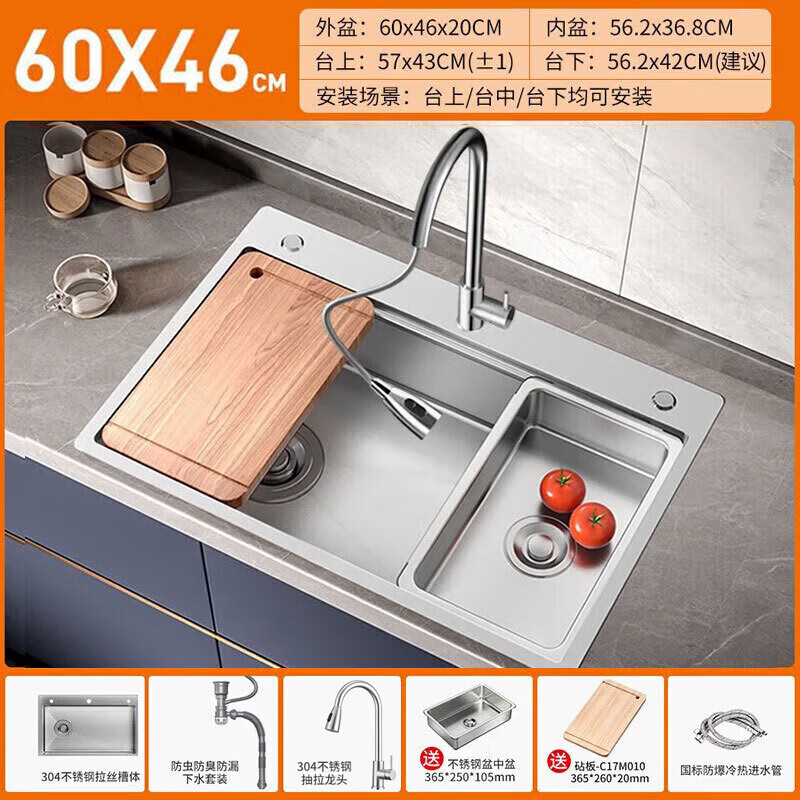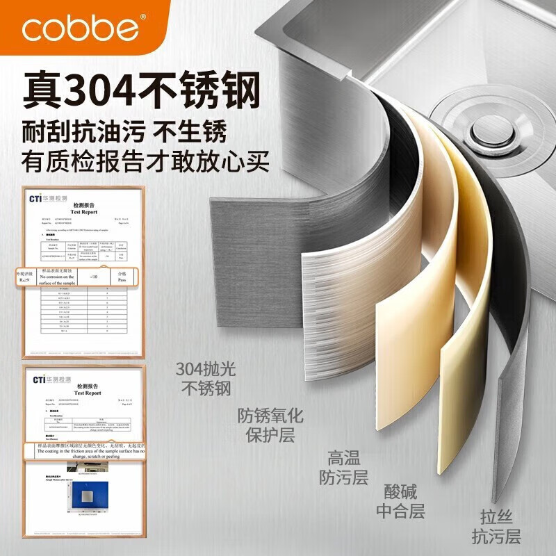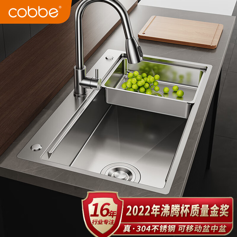 卡贝(cobbe)304不锈钢水槽手工大单槽厨房洗手洗菜盆家用台上盆淘菜洗碗水池价格:678.00元!