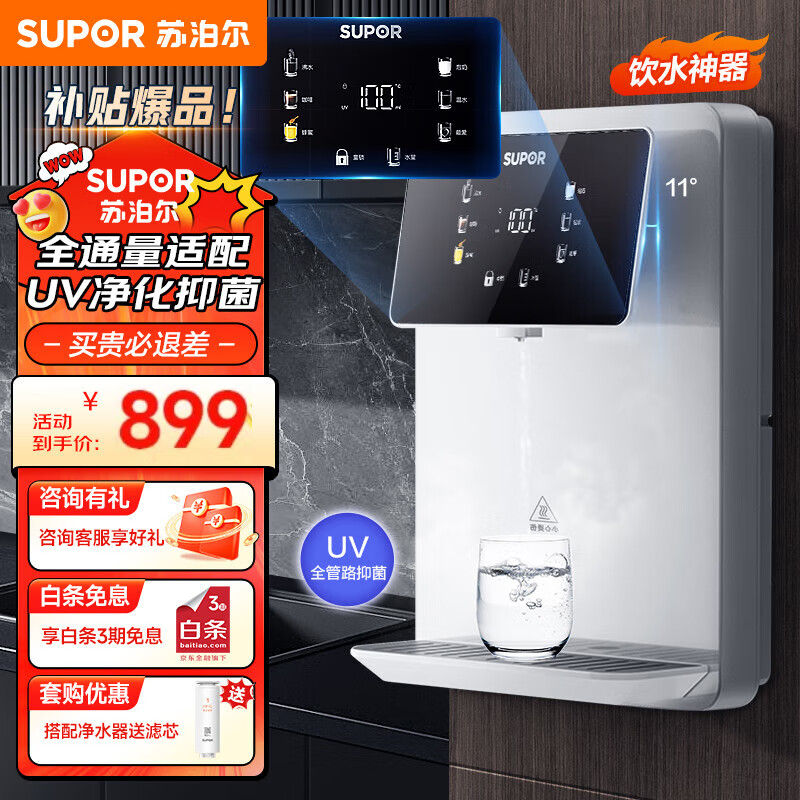 苏泊尔(SUPOR)管线机壁挂式直饮机饮水机台式加热一体机UV功能直饮机净水器伴侣五档调温童锁定量出水20G5价格:899.00元!