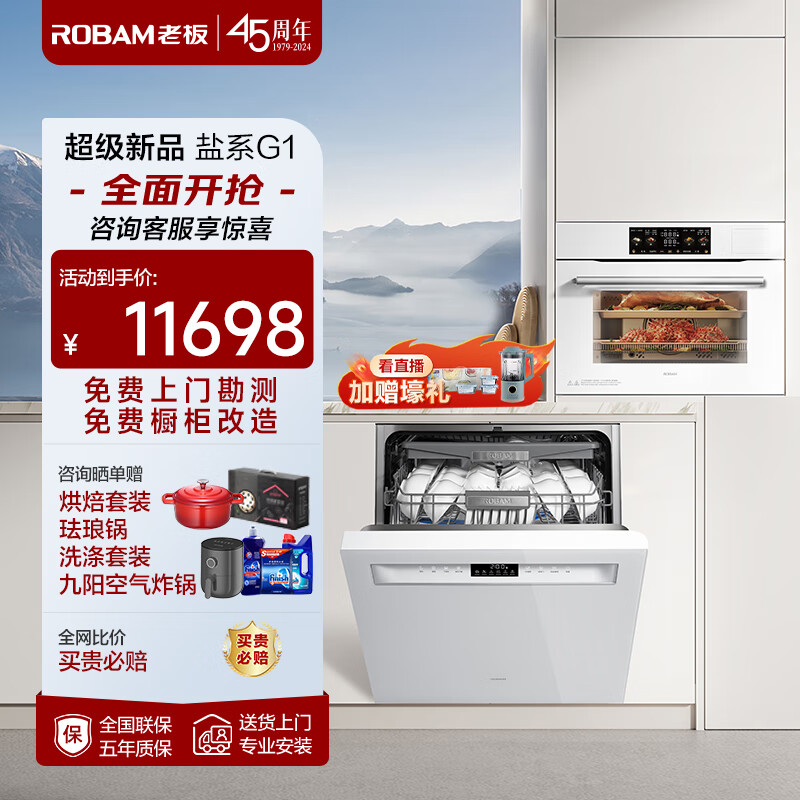 老板(Robam)盐系G1海盐白洗碗机蒸烤套系自动开关门免费橱改55L搪瓷EXP专业控温价格:11698.00元!