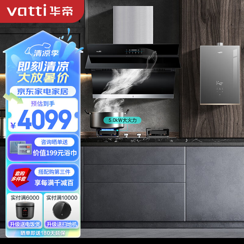 华帝(VATTI)抽油烟机侧吸小尺寸油烟机燃气灶具热水器套装 16L热水器三件套 i11135+72B+152-16(天然气)价格:4099.00元!