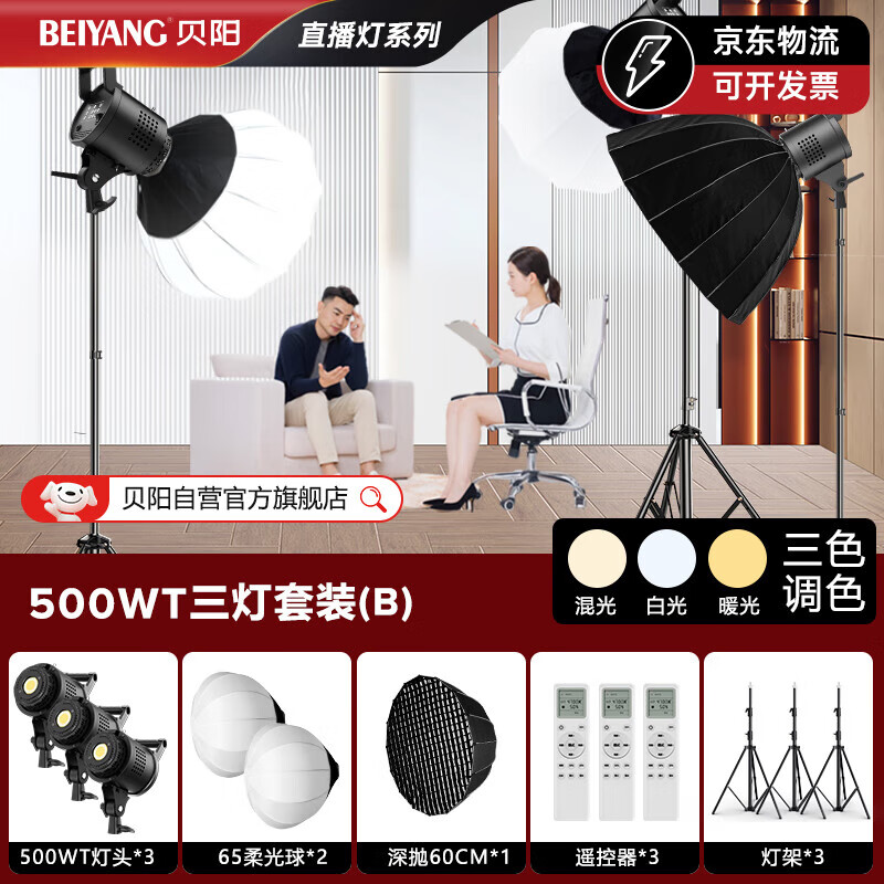 贝阳(beiyang)500WT补光灯柔光led球形打光灯摄影深抛灯美颜相机拍照灯直播设备全套专业常亮灯直播间直播灯价格:1304.00元!