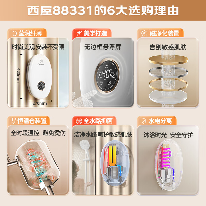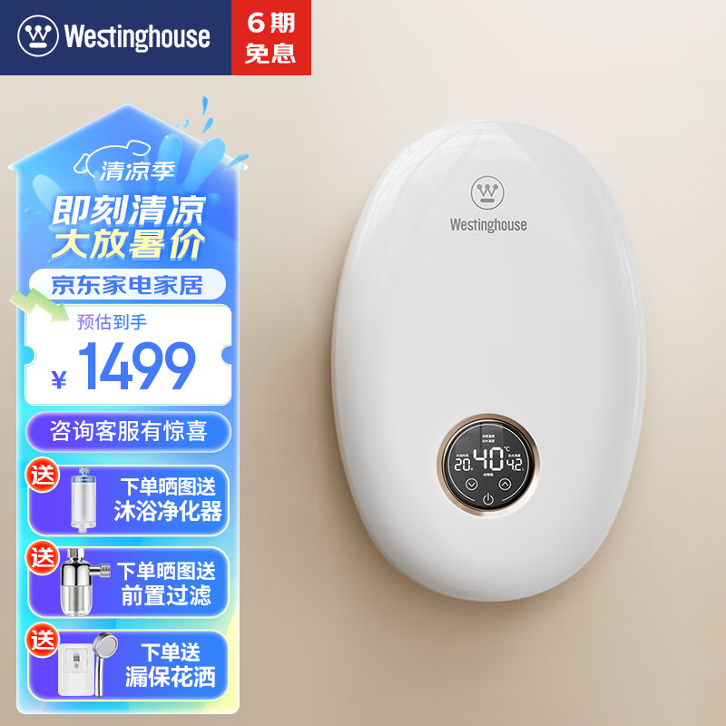西屋即热式电热水器 超薄小型白玉兰mini款家用卫生间洗澡 智能变频恒温 DSKH88331价格:1499.00元!