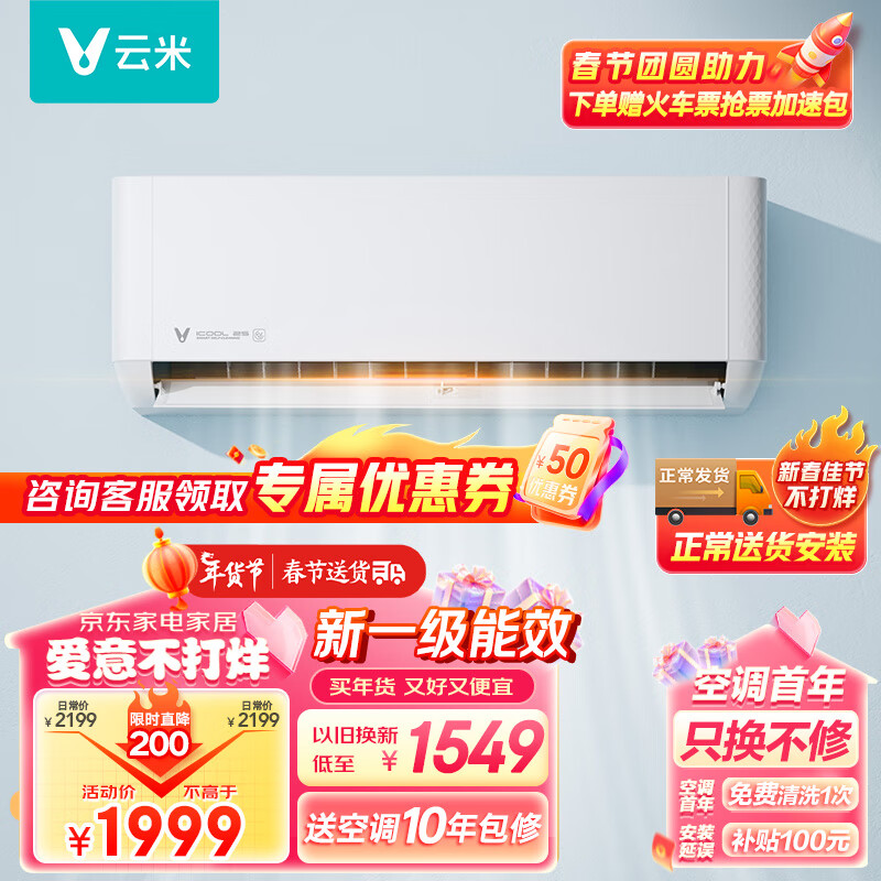云米(VIOMI)新一级 iCool 2S 爱酷 智能家电 变频冷暖 以旧换新 1.5匹壁挂式空调挂机 KFRd-35GW/Y4PP2-A1价格:1999.00元!