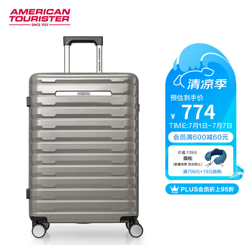 美旅箱包横条纹时尚商务行李箱双排飞机轮TSA密码锁 24英寸NJ2 卡其色价格:834.00元!