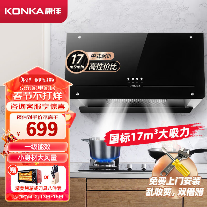 康佳(KONKA)抽油烟机 家用经典款中式吸油烟机 17m3/min大吸力700mm厨房顶吸式脱排烟机 CXW-300-KZ11价格:699.00元!