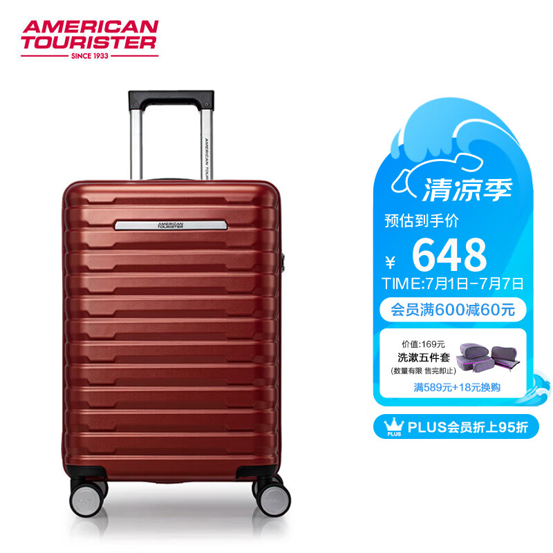 美旅箱包横条纹登机行李箱飞机轮拉杆箱TSA密码箱婚庆箱20英寸NJ2橘红色价格:708.00元!