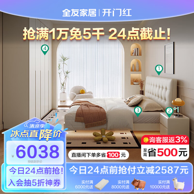 全友家居 卧室5件套 云朵悬浮床椰丝棉床垫二门三门衣柜带床头柜价格:8625.71元!